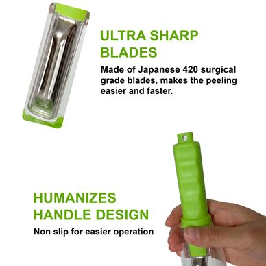 Fruit and Vegetable Peeler with Fixed Container, Multi Purpose Blade and Non-Slip Grip Handle. Julienne Peeler to Remove and Peel Everything [Energy Class A+]