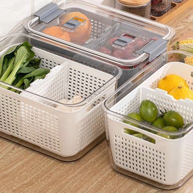 Fresh Fruit & Vegetable Produce Storage Container, BPA Free with Vents, Colander & Divider for Salads, Seafood, Meat, Ideal for Fridges and Kitchens 4.5L